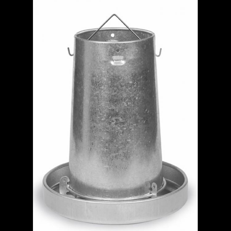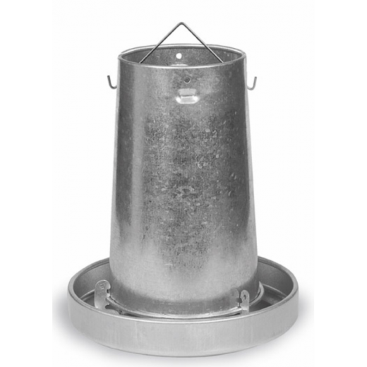 Karmnik dla drobiu - blacha 10 kg - dla kurczaków, kur, indyków i innego drobiu. Blacha ocynkowana, do zawieszenia lub postawienia, w zestawie hak do zawieszania. Średnica 330 mm, wysokość 410 mm.