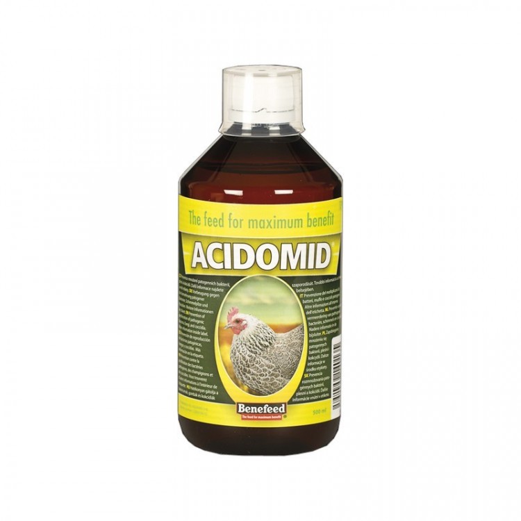 ACIDOMID® to produkt najwyższej klasy, opracowany w nowoczesnej koncepcji, który nie tylko działa przeciwko namnażaniu się bakterii chorobotwórczych, ale również bardzo skutecznie hamuje rozwój i namnażanie się pasożytów wewnątrzkomórkowych, takich jak kokcydia. ACIDOMID® nie jest jednak lekiem, nie zawiera kokcydiostatyków i dlatego nie pozostawia śladów w organizmie. Nie ma również okresu karencji.