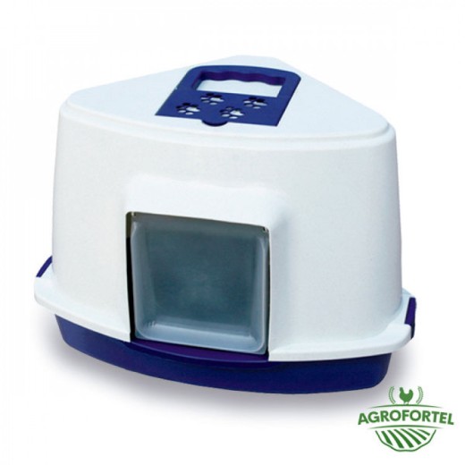 Kuweta dla kota marki AGROFORTEL dla zwierząt , kwadratowa, 560 x 430 x 400 mm. Kuweta wyposażona jest w klapkę i filtr węglowy wychwytujący zapachy.