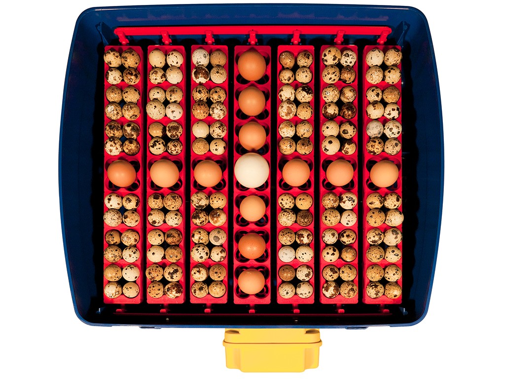 Pojemność z obrotowym rusztem: 49 jaj kurzych, 196 przepiórczych, 49 gęsich, 49 kaczych lub 49 bażantowych.