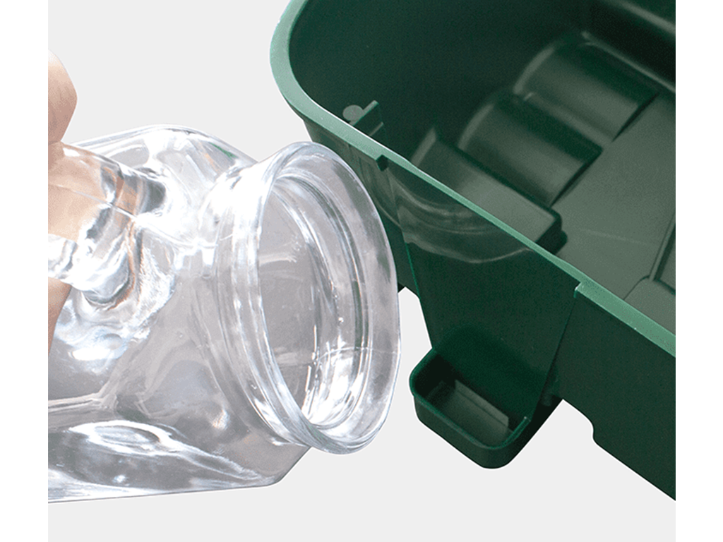 Wilgotność w inkubatorze jest regulowana ręcznie poprzez dodawanie wody do zewnętrznych otworów, które odprowadzają ją do zbiorników znajdujących się pod podstawą (plastikową kratką) na dnie inkubatora. Woda ta paruje, zapewniając pożądaną wilgotność w inkubatorze. Przy wodzie w jednym zbiorniku wilgotność osiąga 45-55%, natomiast przy wodzie w obu zbiornikach wzrasta do 60-65%. Dla uzyskania optymalnych rezultatów zaleca się dodawanie wody o temperaturze 25-30°C, ponieważ zimna woda mogłaby zakłócić warunki panujące w inkubatorze. System ten pozwala na łatwą kontrolę wilgotności bez konieczności otwierania inkubatora , co pomaga utrzymać stabilny mikroklimat, sprzyjający idealnemu wylęgowi.