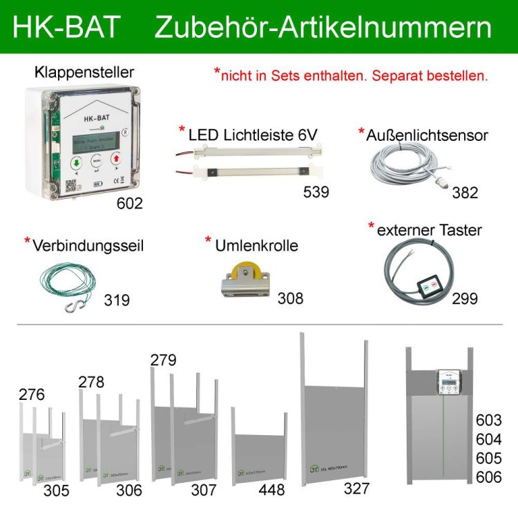 JOSTechnik HK-Bat automatycznie otwiera drzwi kurnika rano i bezpiecznie je zamyka wieczorem. Wszystko to robi za Ciebie silnik elektroniczny, który współpracuje z timerem lub czujnikiem światła . Koniec z obawami o lisy i inne drapieżniki – ten system zapewni bezpieczeństwo Twoim kurom.