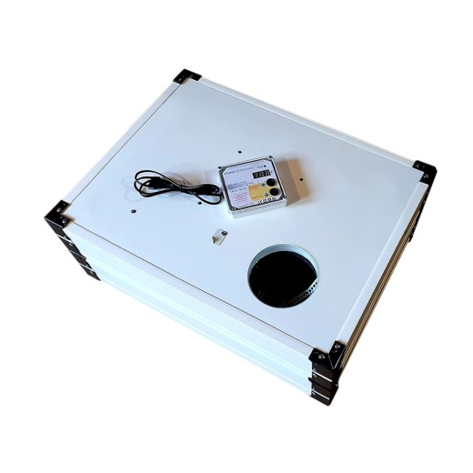 Automatyczna inkubatorka do wylęgu ptactwa wodnego i ryjącego, doskonałe właściwości izolacyjne, automatyczne obracanie jaj, pojemność 55 jaj kurzych, z cyfrową kontrolą temperatury od 26°C do 42°C, z ręczną kontrolą wilgotności, z termometrem, w zestawie zasilacz sieciowy.