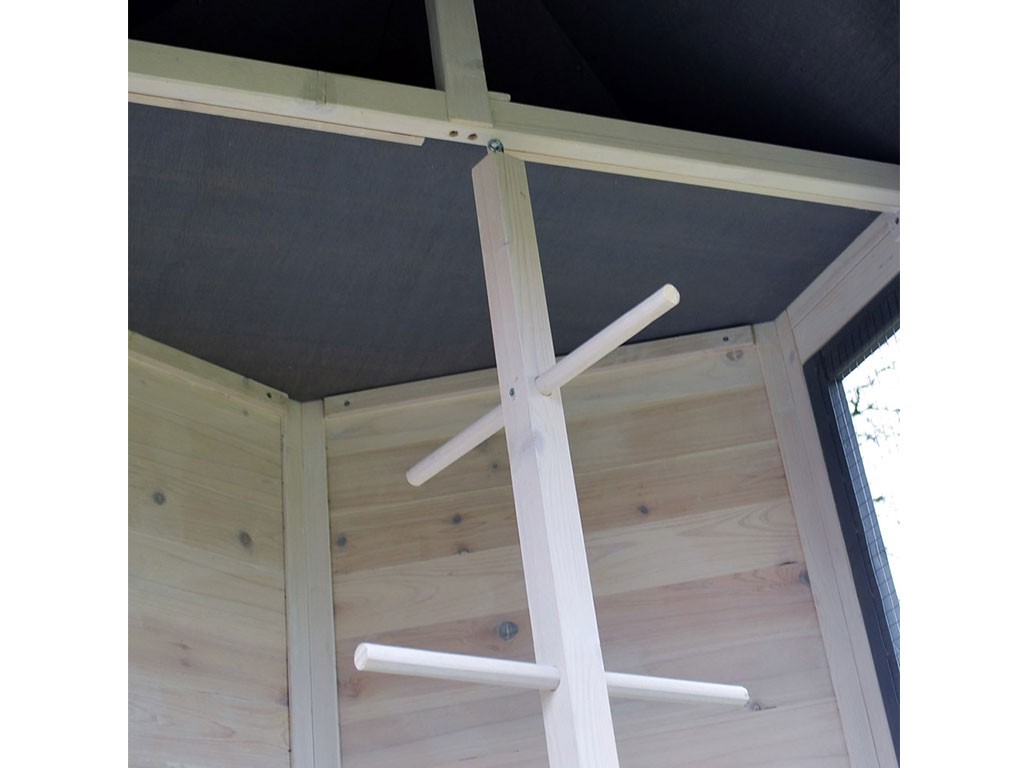 Klatka zapewnia również wygodę w utrzymaniu dzięki 6 drzwiom , które można otwierać jednocześnie lub osobno. Środkowe drzwi posiadają również mniejsze drzwiczki , przez które można bezpiecznie wejść do klatki. Aby Twoja woliera służyła jeszcze dłużej, zalecamy umieszczenie jej pod zadaszeniem i regularną wymianę powłoki ochronnej drewna .