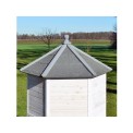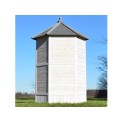 Woliera o wymiarach 100x100x183 cm pomieści dużą papugę i kilka mniejszych ptaków. Wykonana jest z wytrzymałego drewna sosnowego, dodatkowo zabezpieczonego atrakcyjną białą farbą , i może być ozdobą nie tylko tarasu, ale i ogrodu. Wytrzymały dach bitumiczny ochroni ptaki przed deszczem i słońcem. Wewnątrz woliery znajduje się wiszący trapez o długości 115 cm z 5 żerdziami, który zapewni ptakom wystarczająco dużo miejsca do odpoczynku.