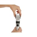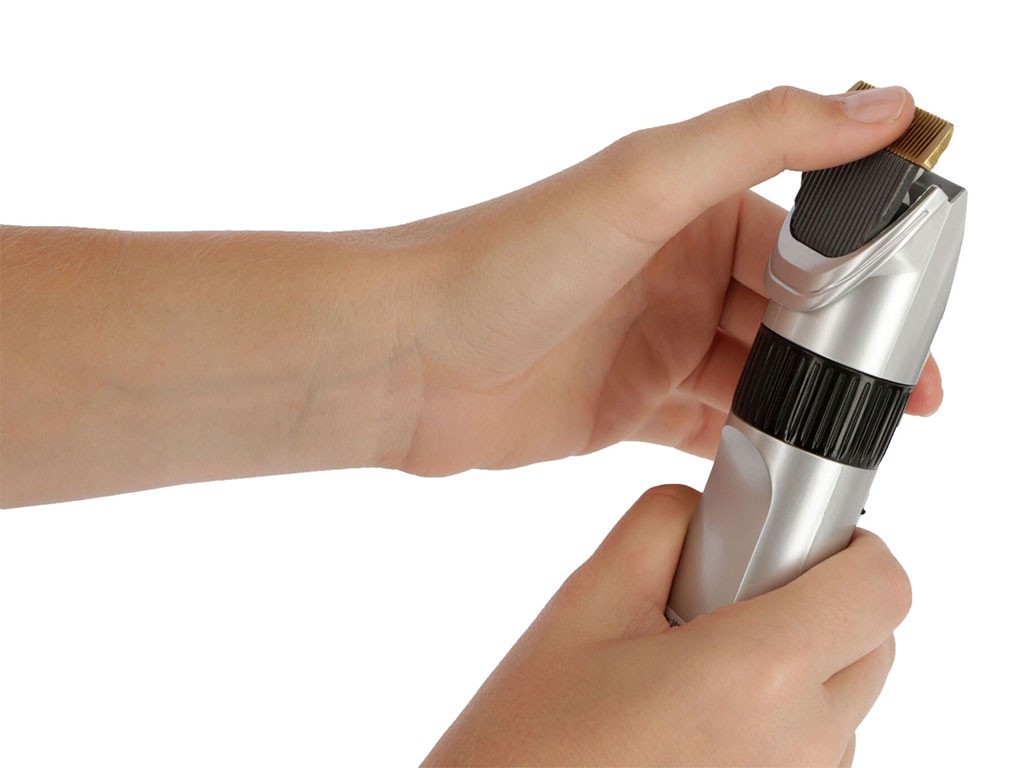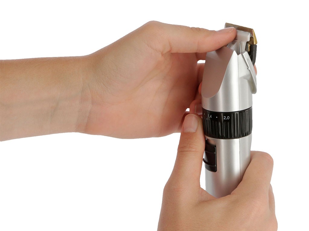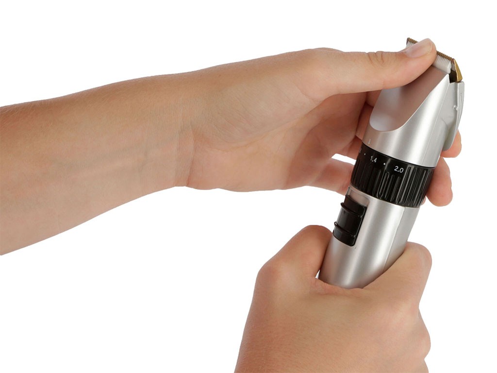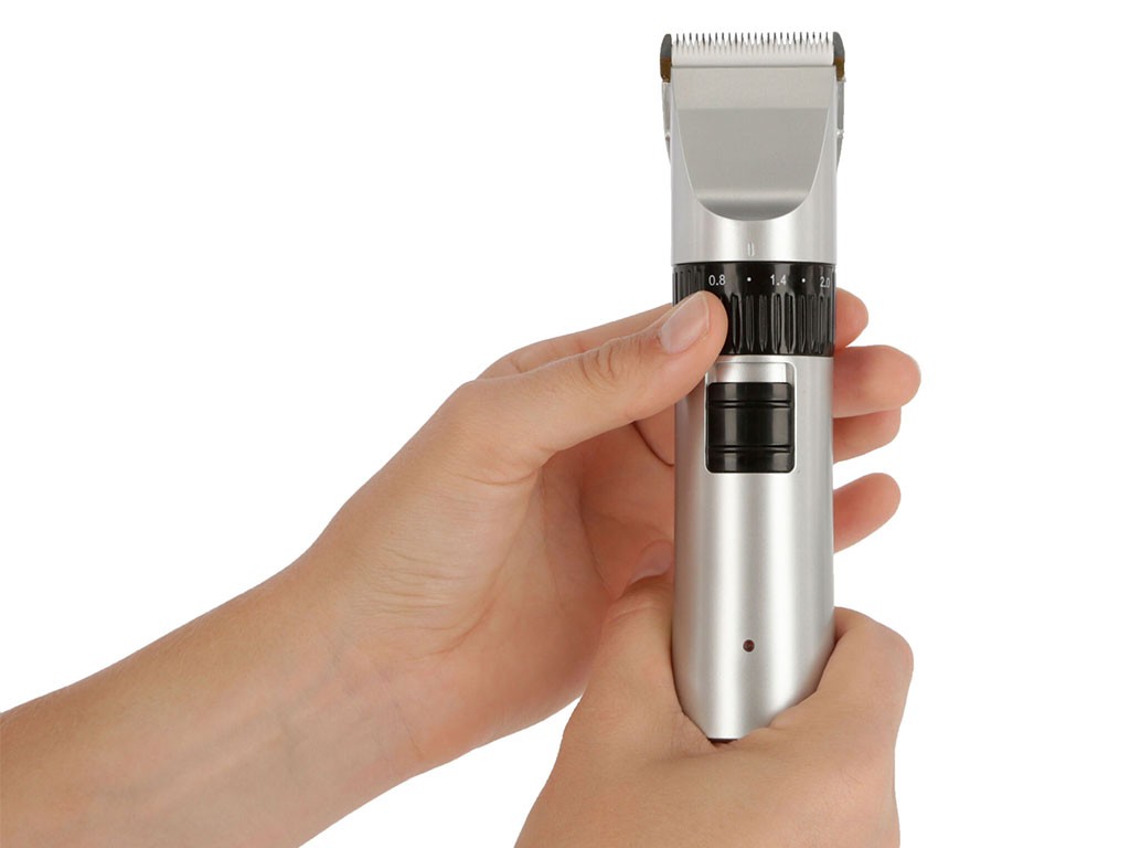 Za pomocą trymera i wysokiej jakości ceramicznej głowicy golącej możesz precyzyjnie przyciąć włosy. Zestaw zawiera 4 nakładki (3, 6, 9, 12 mm) , a długość cięcia możesz regulować bezpośrednio na głowicy golącej za pomocą zintegrowanego ustawienia – 0,8 mm / 1,1 mm / 1,4 mm / 1,7 mm / 2 mm.