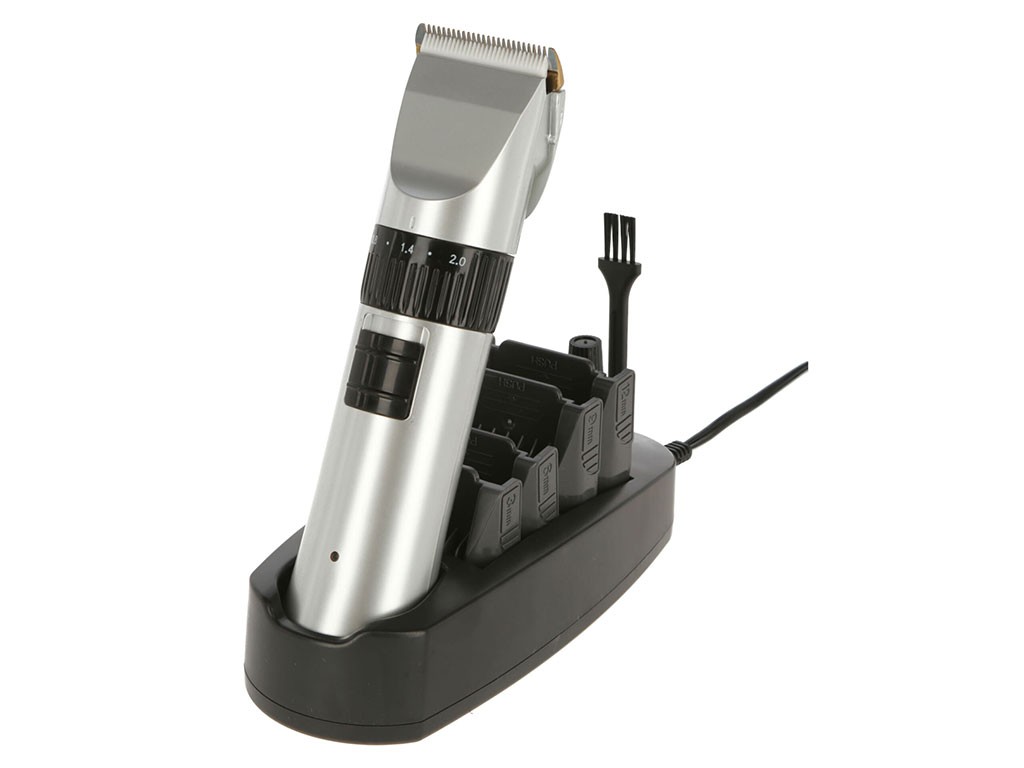Bezprzewodowa maszynka do strzyżenia psów i koni , do dokładnego i ostatecznego przycinania, doskonałe właściwości tnące, wydajny akumulator Ni-MH 1200 mAh, do 90 minut na jednym ładowaniu, z 4 nasadkami (3, 6, 9, 12 mm), 5-stopniowa zintegrowana regulacja głowicy, ceramiczna głowica tnąca, szerokość cięcia 38 mm.