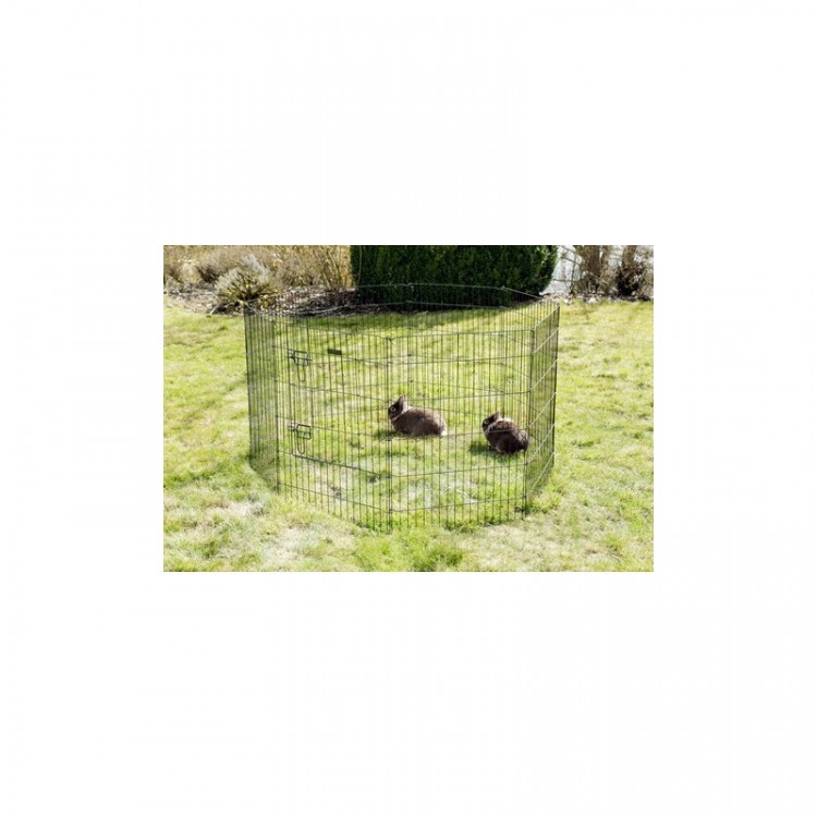 Ośmiokątny kojec z drzwiczkami dla szczeniąt, drobiu lub gryzoni z możliwością rozbudowy o dodatkowe ścianki.
