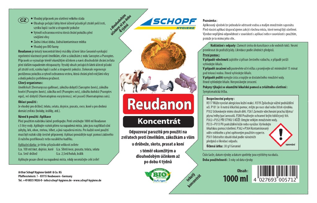 BIO płynny koncentrat przeciw trzmielom, pchłom, kleszczom SCHOPF REUDANON KONCENTRAT 1000ml