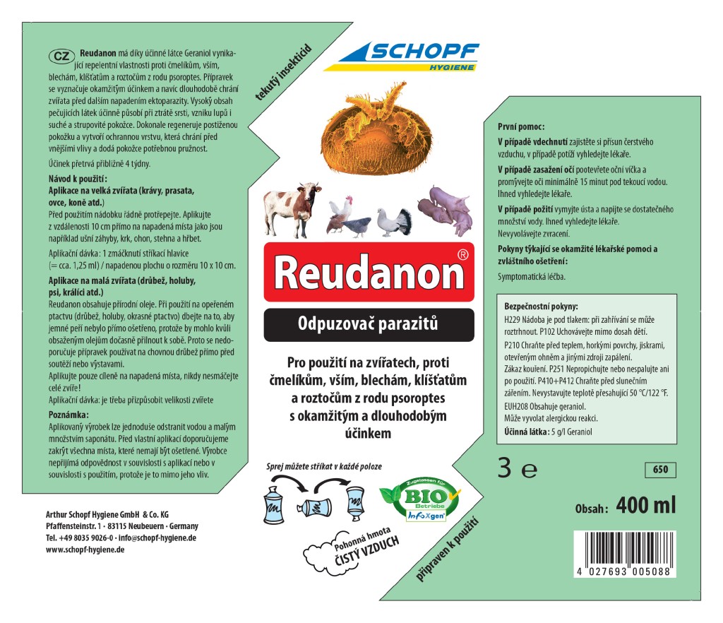 BIO roztwór w sprayu na trzmiele, pchły, kleszcze SCHOPF REUDANON AEROSOL 400ml