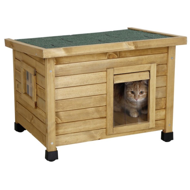 2. Komfort dla Twojego pupila: Zawiasowe drzwi z przezroczystymi listwami chronią Twojego kota przed wiatrem i zimnem, a małe okienko z pleksiglasu zapewnia dużo światła.