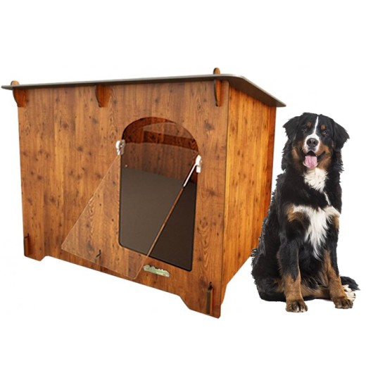 - Wejście do psiej budy jest zabezpieczone wodoodporną klapą z Lexanu , która ochroni Twojego pupila przed wiatrem i zimnem. Klapa jest zamocowana do wejścia w dwóch miejscach, dzięki czemu pies może wygodnie przez nią przechodzić, wchodząc i wychodząc z budy.