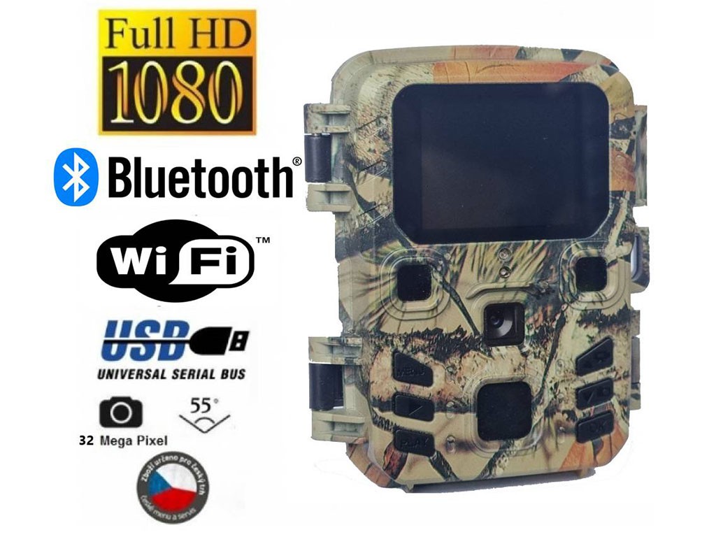 Kamera Bunaty mini Wifi to najmniejsza kamera na rynku z łącznością Wi-Fi i Bluetooth. Pomimo niewielkich rozmiarów, wyposażona jest w najnowsze technologie, co czyni ją liderem w swojej kategorii. Posiada inteligentne funkcje, takie jak timer, tryb poklatkowy, ręczne ustawienie ISO (czułości na światło), pozwalające na korzystanie z krótszych czasów (a tym samym uzyskiwanie ostrych zdjęć) w słabych warunkach oświetleniowych, z możliwością ustawienia częstotliwości odświeżania wideo. Wyposażona jest w dwie diody LED najnowszej generacji , które charakteryzują się dużą mocą i zapewniają poświatę nawet w całkowitej ciemności. Za pomocą 6 przycisków i prostego ustawienia w menu czeskim można ustawić fotopułapkę np. tylko do zdjęć nocnych. Fotopułapka jest bardzo prosta w obsłudze i nie wymaga wiedzy ani doświadczenia, aby ją skonfigurować. Wystarczy włożyć kartę SD i 4 standardowe baterie AA do fotopułapki. Ustawiasz datę, godzinę i wybierasz opcję robienia zdjęć lub nagrywania filmów – i to wszystko!