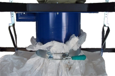 Zaciskanie szyjki dużego worka rękawem - uszczelnienie, minimalizacja pyłu.