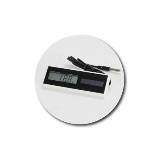 Ten cyfrowy termometr jest zasilany ogniwem słonecznym i nie wymaga baterii , co czyni go bardzo praktycznym wyborem. Dzięki kablowi o długości około 1 m idealnie nadaje się do kurników, klatek i innych pomieszczeń, w których konieczne jest monitorowanie temperatury. Termometr nie nadaje się do stosowania w wylęgarniach.