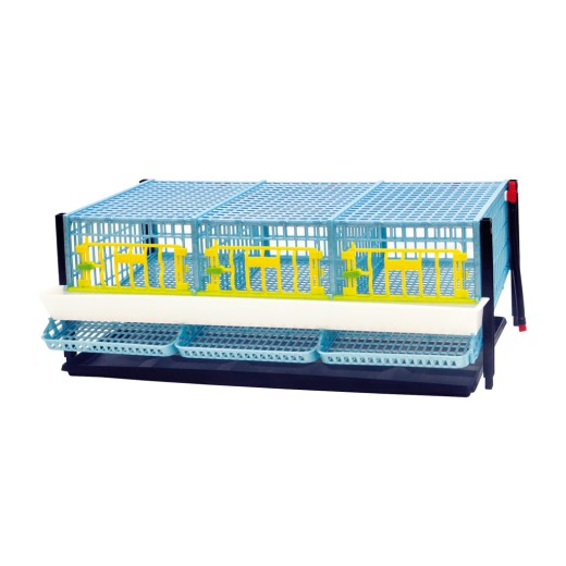 Klatka dla przepiórek, przeznaczona do hodowli od 18 do 30 przepiórek, z opatentowaną technologią Comfortplast , wymiary 98 x 65 x 35 cm. Jest to jednopiętrowa dodatkowa klatka bez ramy, z 3 przegrodami , wyposażona w tackę do znoszenia jaj przepiórczych, karmnik z kratką zapobiegającą marnowaniu pokarmu oraz poidło z dopływem wody bez tacki . Klatki wykonane są z tworzywa sztucznego o wysokiej odporności na odchody przepiórek i bakterie – bardzo łatwa konserwacja klatki i odchodów.