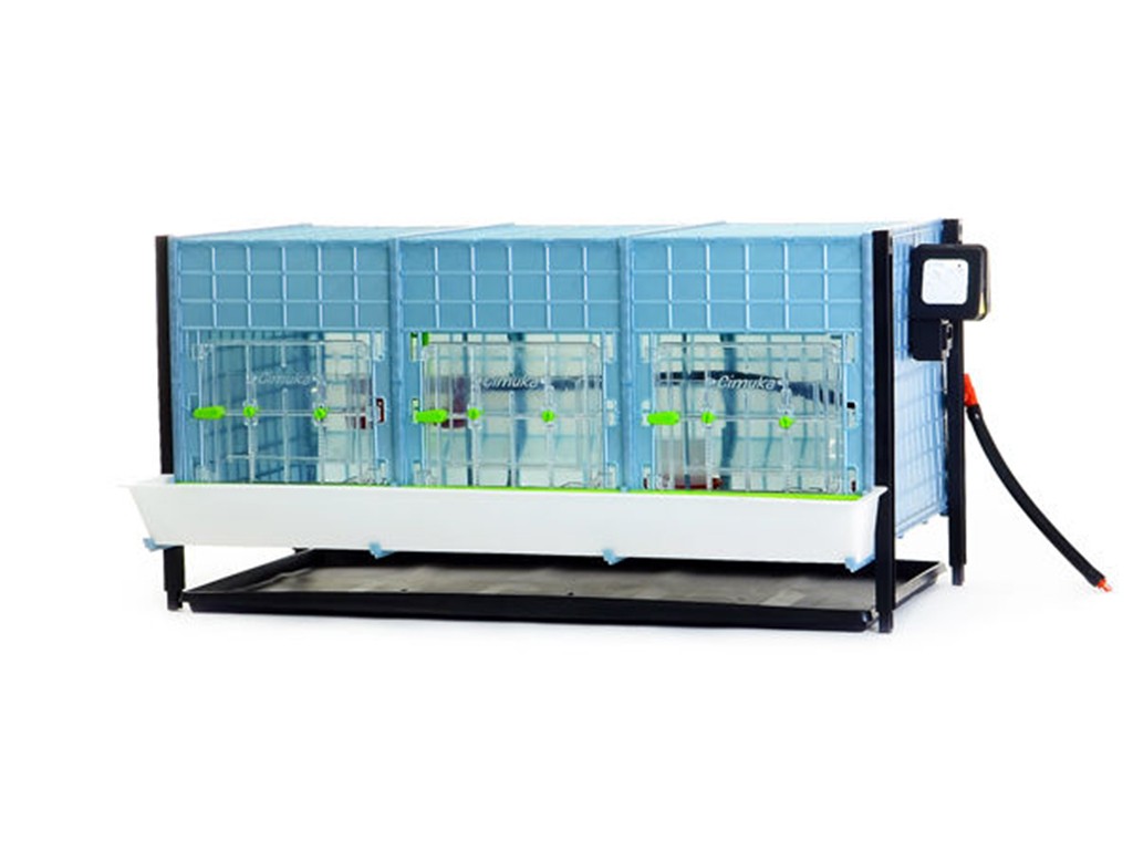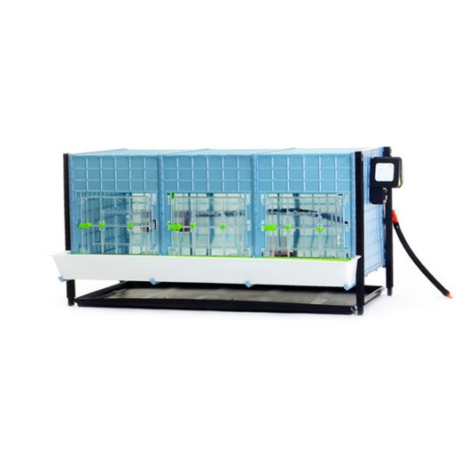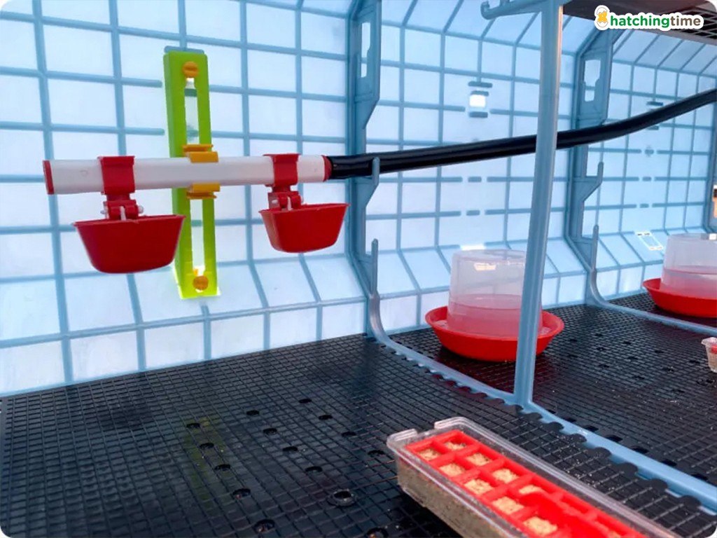 Żłobek wyposażony jest w dwa poidła w kształcie kapelusza na pierwsze dni życia piskląt oraz dwa poidła smoczkowe z regulacją wysokości , które zapewniają bezproblemowy i higieniczny sposób pojenia piskląt w klatce. Poidła smoczkowe zawierają również dodatkowe miseczki na wodę , które tworzą wysokiej jakości poidła automatyczne i zapobiegają ich zamoczeniu przez pisklęta. Woda do poideł automatycznych jest dostarczana za pomocą węży.