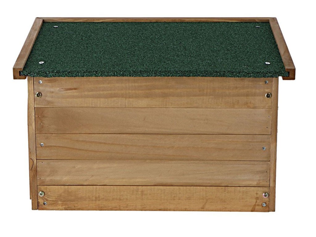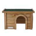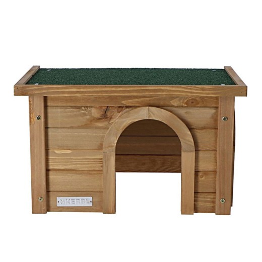 Domek dla królików, świnek morskich, chomików, szynszyli i myszoskoczków z dwoma wejściami i trwałym dachem z powłoką bitumiczną. Nadaje się do klatki lub wybiegu zewnętrznego, z powłoką ochronną , o wymiarach 45x32x27 cm.