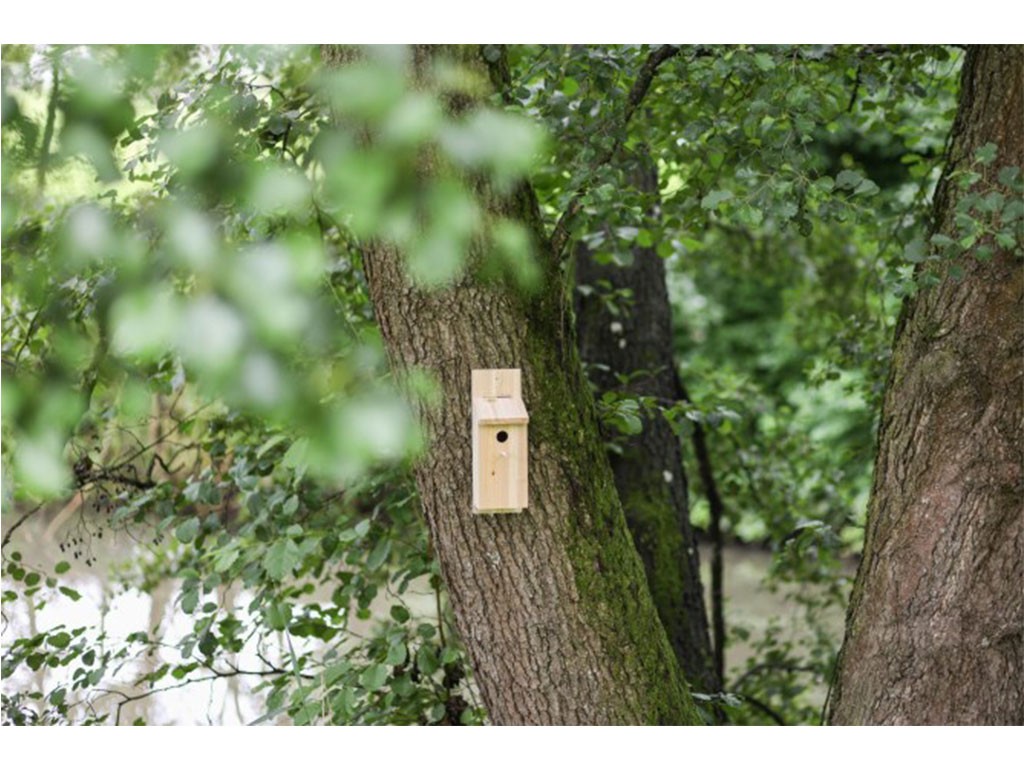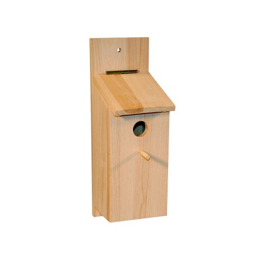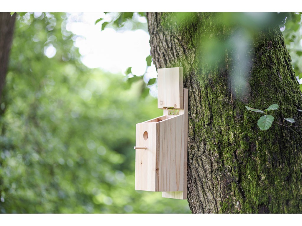 Dzięki uchylnemu dachowi możesz łatwo otworzyć budkę dla ptaków i wyczyścić ją w ciągu kilku minut. Aby przedłużyć żywotność budki, zalecamy pomalowanie jej zewnętrznej strony farbą na bazie wody. Dzięki temu możesz dostosować ją do swoich upodobań i zmienić kolor farby.