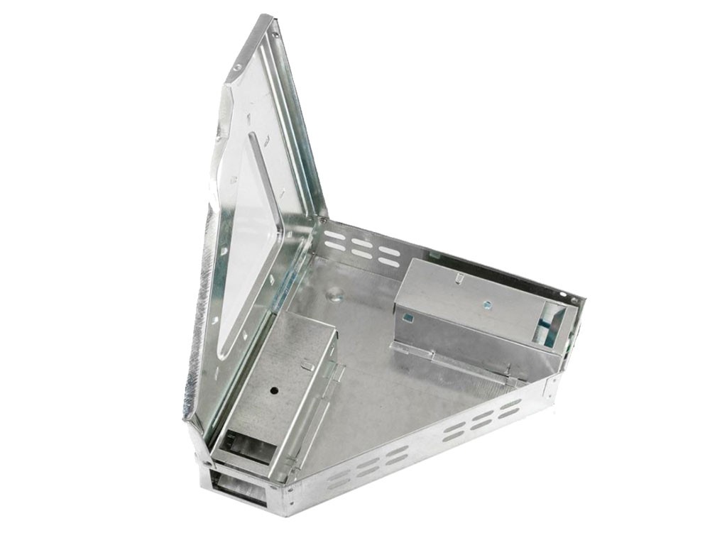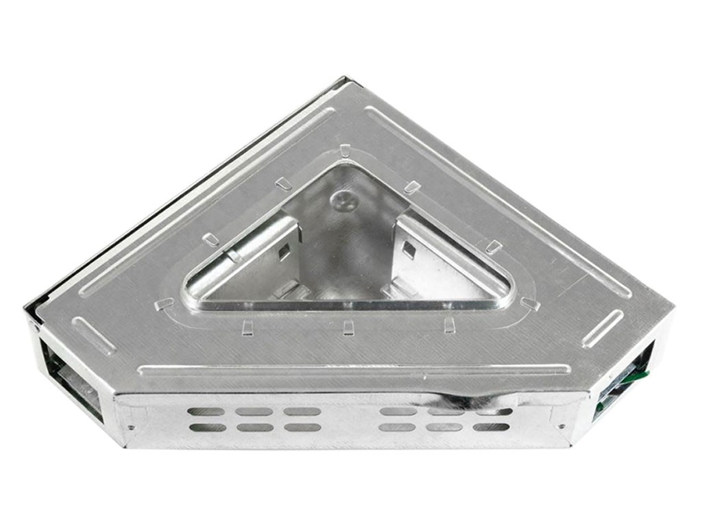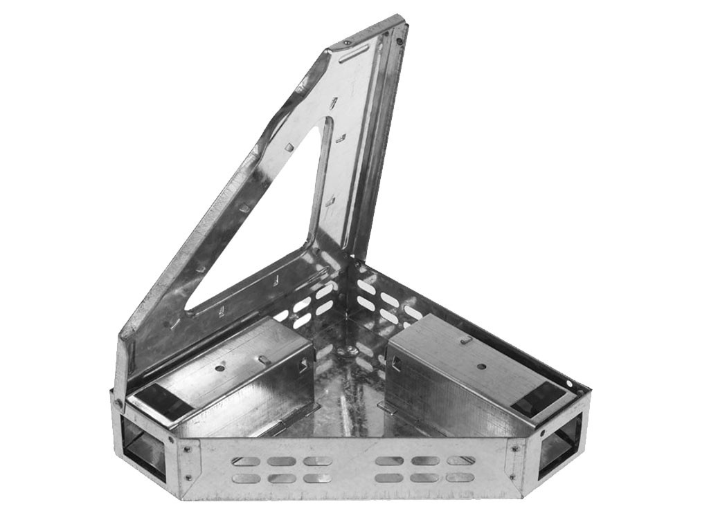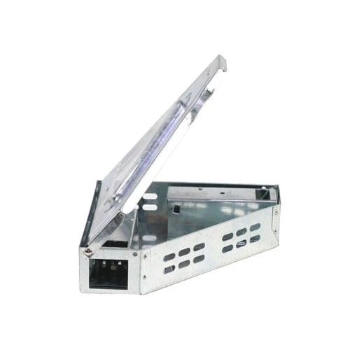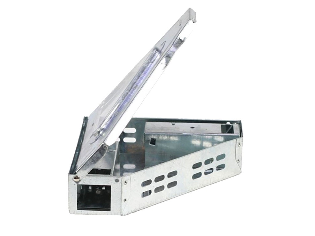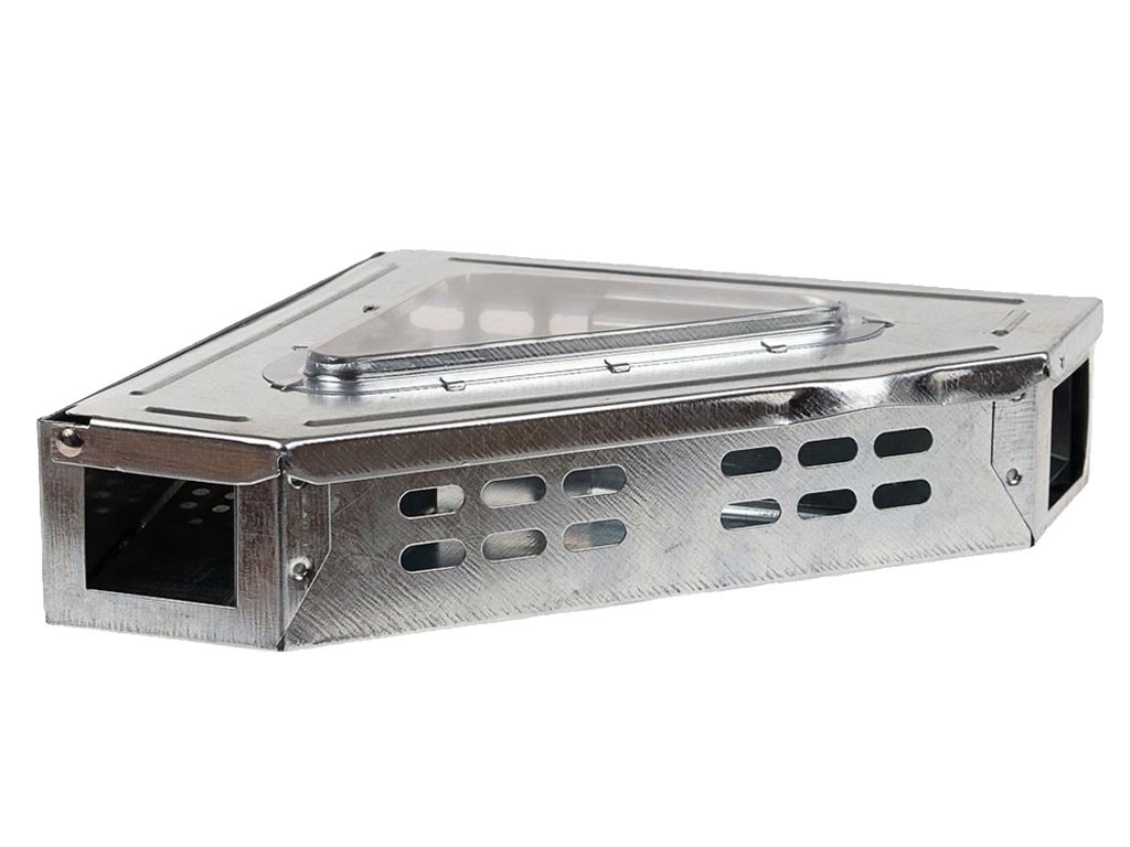 - Jest to metalowa pułapka z przezroczystą, podnoszoną pokrywką, przeznaczona do montażu w narożniku pomieszczenia.