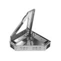 Klapa domkowa narożna 90°, wykonana z blachy ocynkowanej , z przezroczystą pokrywą, 2 wejścia, składana kładka, wymiary: 18,5x18,5x4,5 cm.