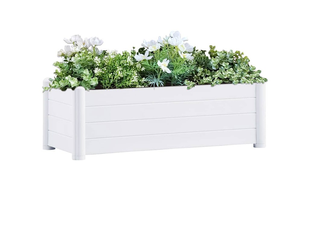 Skrzynia z dnem drenażowym, do stosowania na zewnątrz , wykonana z polipropylenu, w kolorze białym, pojemność 80l, wymiary 100x43x35cm.