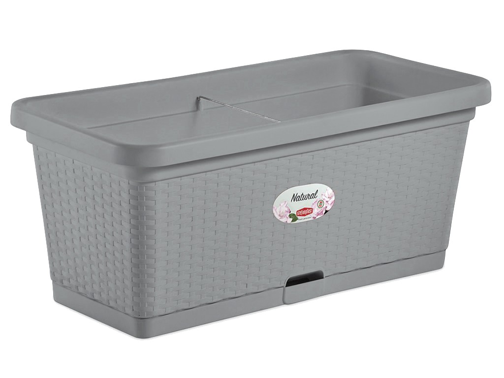Pojemnik samonawadniający , wyjmowana podpora wewnętrzna, wykonany z polipropylenu, kółka ułatwiające transport, kolor szary, pojemność 66 l, wymiary 80x40x34 cm.