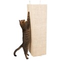 Narożny drapak dla kotów, do montażu na ścianie lub w rogu pokoju, podstawa drewniana, spód pokryty polarem, powierzchnia do drapania z sizalu , mocowanie za pomocą haczyków i sznurków, wymiary 100x56cm.