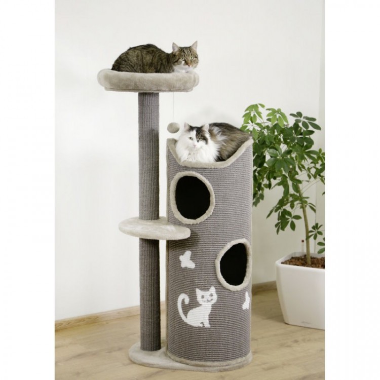 Drapak dla kota Tiana z sizalu to średniej wielkości drapak . Nowoczesny, szary drapak z sizalu z pluszowymi legowiskami i grzędami dla Twojego kota.