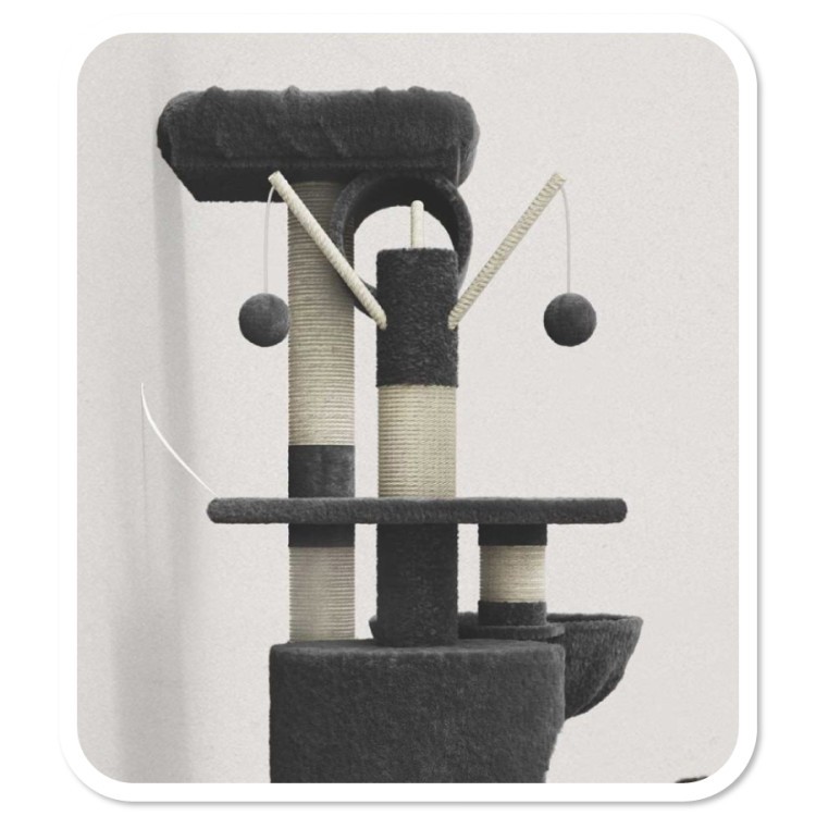 Drapak dla kota z wieloma poziomami i zabawkami - EMMA Ciemnoszary, 75 x 140 x 40 cm