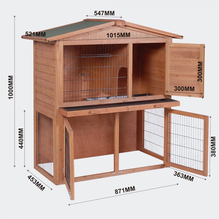 Drewniana klatka dla królika HONGKONG, 870x450x1000 mm