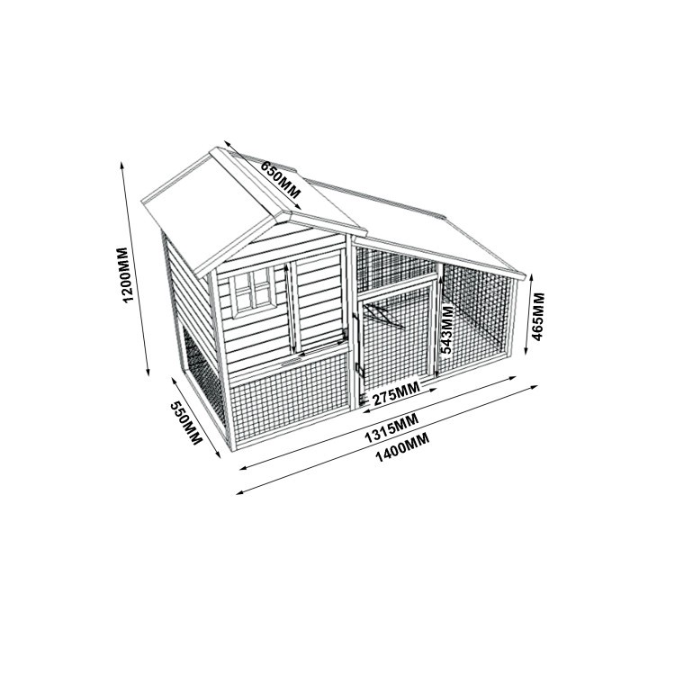 Drewniana klatka dla królików, królików miniaturowych lub innych małych gryzoni, a nawet kurnik bez gniazda, o wymiarach 1402x660x1200 mm. Idealna klatka dla królików, wyposażona w wyjmowaną tackę na odchody, ułatwiającą czyszczenie. Troje drzwiczek zapewnia bezproblemowy dostęp do klatki.