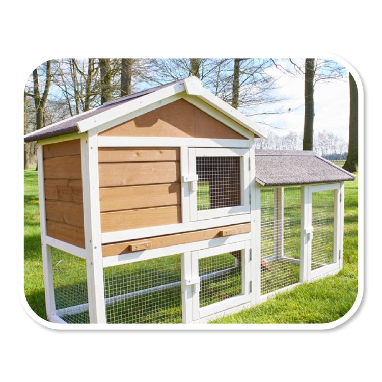 Niecka wykonany z drewna i waży około 25 kg. Dla ochrona przed słońcem Jest Dach pokryty jest papą asfaltową . Klatka dla królików nie jest ocieplona . Zalecamy umieszczenie domku pod zadaszeniem , aby chronić go przed deszczem, śniegiem i intensywnym nasłonecznieniem. Powierzchnia domku jest zabezpieczona podstawową powłoką ochronną. Aby przedłużyć żywotność, powłokę ochronną należy odnawiać, tak jak w przypadku każdego drewna.