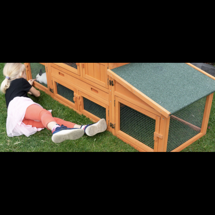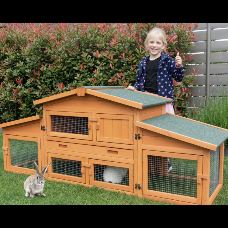 Klatka dla królików PRACHATICE to luksusowy, dwupiętrowy domek dla królików, świnek morskich lub chomików. Składa się z dwóch części – domku i dwóch bocznych wybiegów. Twój pupil pokocha tę klatkę. Montaż jest bardzo prosty dzięki dołączonej instrukcji obrazkowej, poradzi sobie z nim każdy.