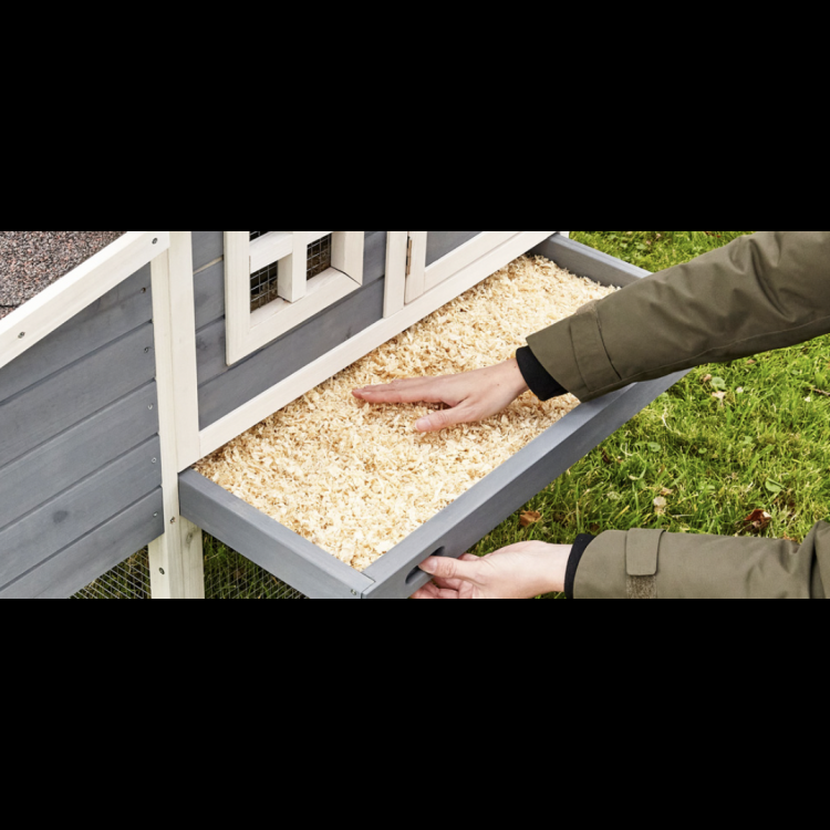 Kurnik wyposażony jest w szufladę umożliwiającą łatwe opróżnianie odchodów.
