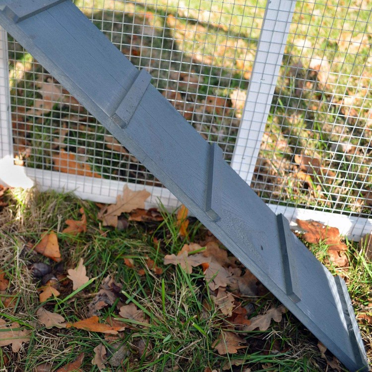 Duże drzwi zapewniają wygodny dostęp do zagrody. Uchylny dach ułatwia zbieranie jaj.
