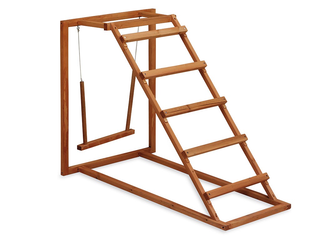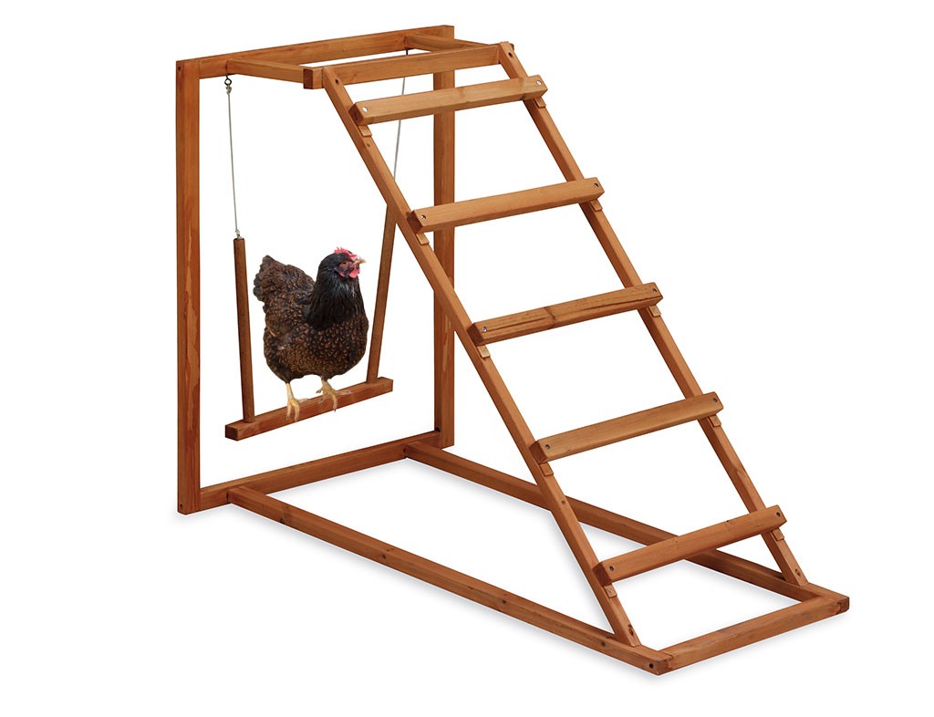 Plac zabaw dla kurczaków, materiał: drewno, drabinka z 5 grzędami, huśtawka do zabawy, wymiary: 60x104,5x85cm.