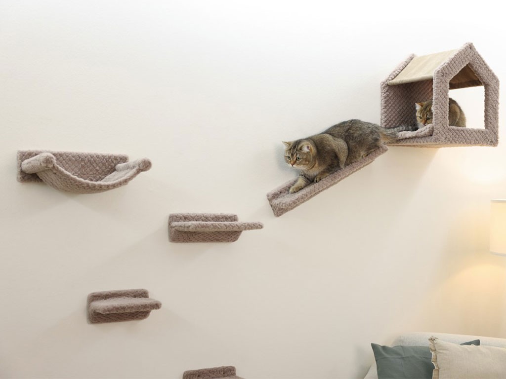 Drzewko dla kota na ścianę KERBL 80920 MONTE BALDO, zestaw półek ściennych, taupe, 6 szt.