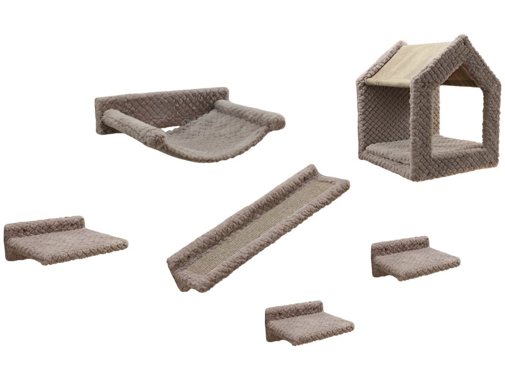 Drapak dla kota wiszący KERBL 80920 MONTE BALDO, zestaw półek ściennych, kolor taupe, 6 szt.