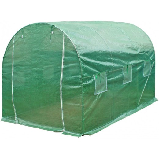 Stalowe ramy są owinięte grubą folią polietylenową o gramaturze 120 g/m². Folia polietylenowa jest wytrzymała, filtruje promieniowanie UV i chroni przed zbyt intensywnym światłem słonecznym, jednocześnie chroniąc rośliny przed deszczem i wiatrem. Szklarnię można otworzyć za pomocą dwóch bocznych zamków błyskawicznych, które umożliwiają zwinięcie folii. Sześć okien zabezpieczonych kratkami zapewnia dobrą cyrkulację powietrza.
