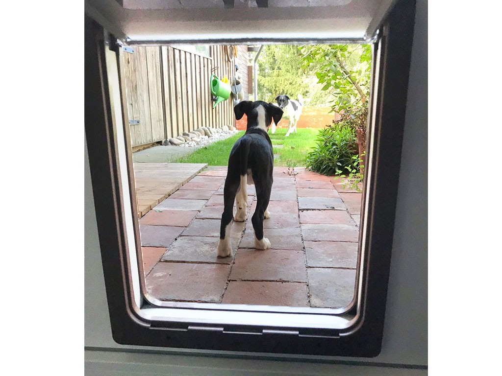 Drzwi dla psa wyposażone są w magnetyczny zatrzask , który zamyka klapkę po każdym użyciu, zapobiegając uchyleniu drzwi i ucieczce ciepła. Klapka drzwiczek jest również wyposażona w uszczelkę zapobiegającą przeciągom, dzięki czemu drzwi są całkowicie szczelne . Aby zablokować drzwiczki, wystarczy zatrzasnąć nieprzezroczystą klapkę i nacisnąć przycisk PRESS, aby je odblokować.