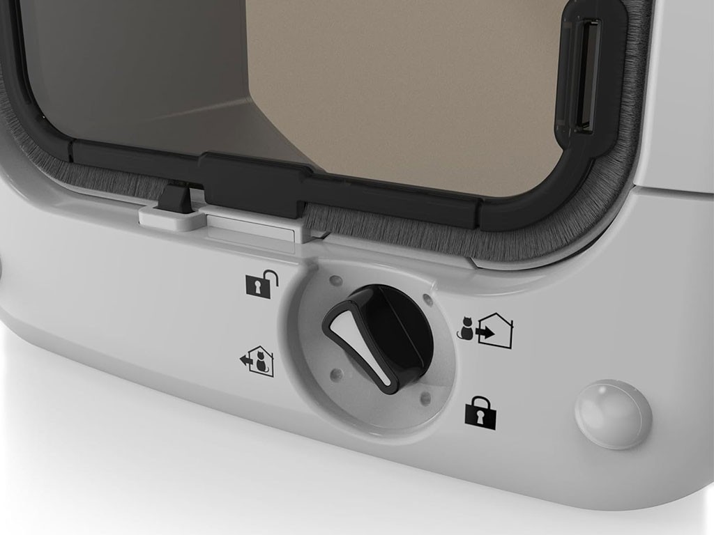 Drzwiczki dla kota zawierają inteligentny system skanowania podskórnego mikroczipu kota, dzięki czemu otwierają się po wykryciu chipa. Aby umożliwić kotu korzystanie z drzwiczek bez konieczności wszczepiania chipa, można wyposażyć je w elektroniczny identyfikator KERBL 80873 , który można umieścić na przykład na obroży. Drzwiczki posiadają magnetyczny zatrzask , który zamyka klapkę po każdym przejściu , zapobiegając uchyleniu drzwiczek i ucieczce ciepła. Klapka drzwiczek jest również wyposażona w uszczelkę, która zapewnia całkowitą szczelność .