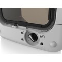 Drzwiczki dla kota z mikroprocesorem , ustawienia dla maksymalnie 30 kotów, do drzwi/paneli/ścian o grubości do 85 mm, wyświetlacz LED, miganie po zarejestrowaniu chipa, 4-kierunkowy zamek obrotowy, zatrzask magnetyczny, przezroczysta klapka polimerowa, hermetyczna uszczelka drzwi , wymiary drzwi 19,7 x 24,6 cm, wymiary otworu 17,3 x 19,8 cm.