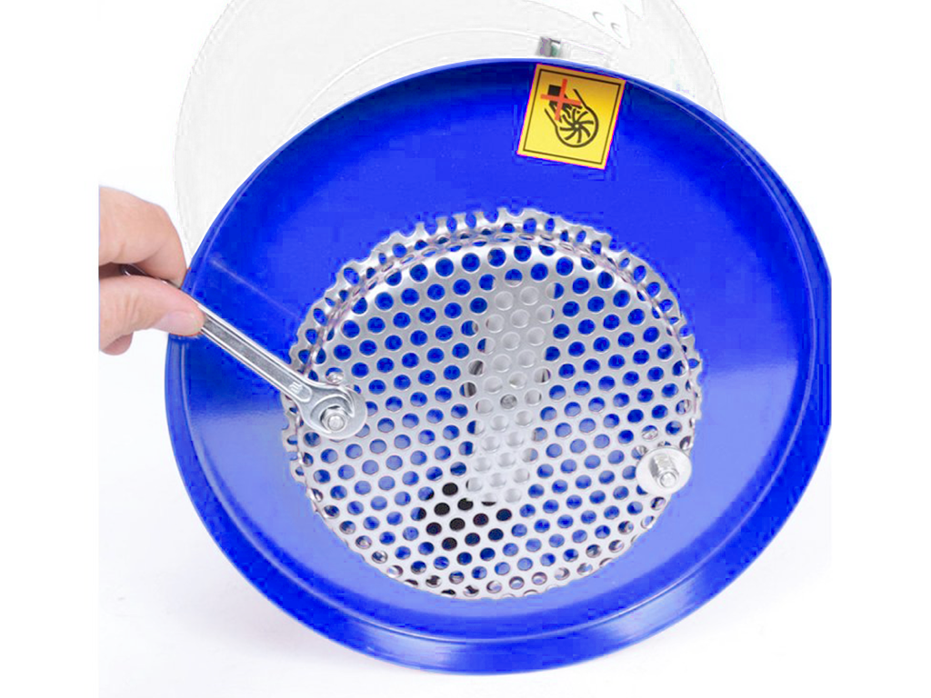Wydajność rozdrabniacza zależy od wybranej grubości sita i waha się od 15 do 35 do 80 do 115 kg/h – im większa grubość, tym wyższa prędkość rozdrabniania. Rozdrabniacz młotkowy jest dostarczany z zamontowanym sitem o średnicy 7 mm , a w prezencie otrzymasz trzy dodatkowe sita o średnicy 1,5–2,5–5 mm + klucz do wymiany sit. Łącznie otrzymasz 4 sita.