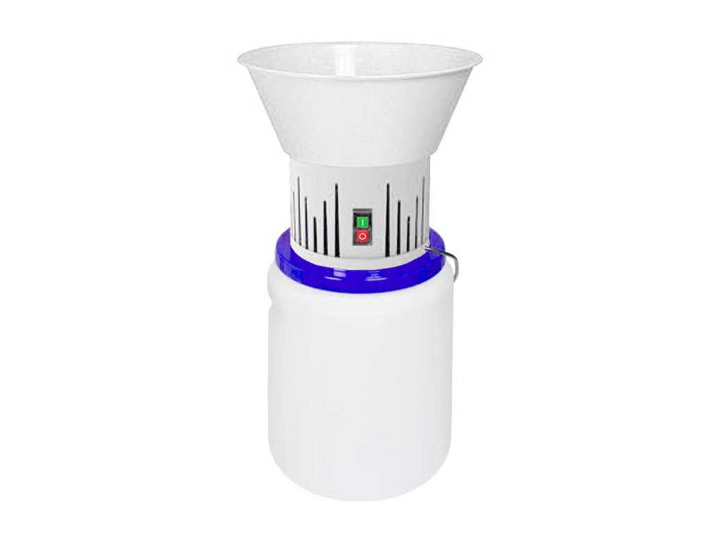 Po rozdrobnieniu surowca na wybranym sicie do wymaganej grubości , trafia on do beczki magazynowej o pojemności 20 l . Po zakończeniu rozdrabniania beczkę można zamknąć pokrywą z blokadą bezpieczeństwa i przechowywać w niej surowiec tak długo, jak to konieczne.