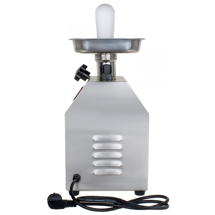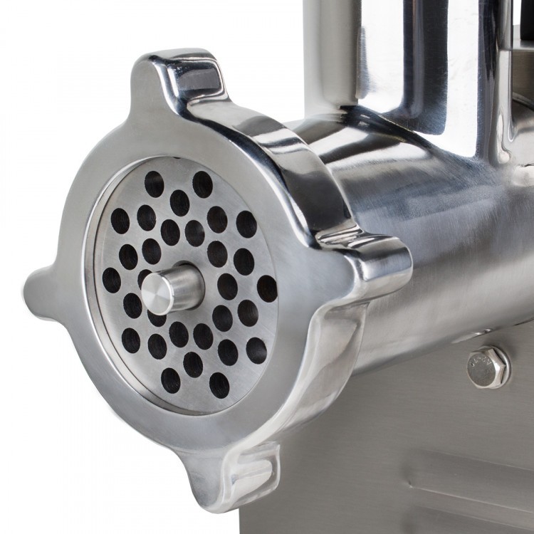 Korpus maszynki wykonany jest ze stali nierdzewnej dopuszczonej do kontaktu z żywnością, co zapewnia czystą pracę i łatwe czyszczenie urządzenia. Maszynka może przetworzyć do 150 kg mięsa na godzinę.