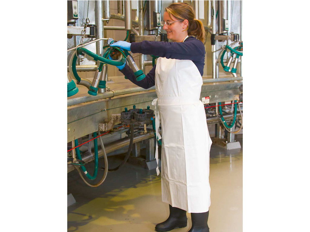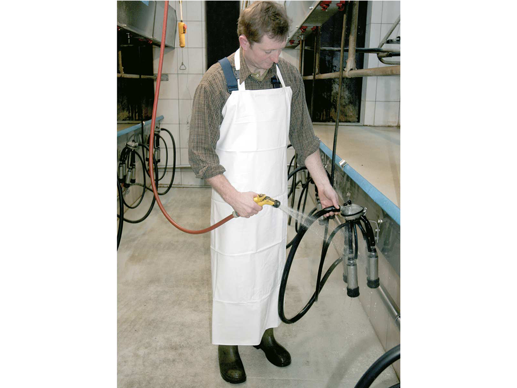 Fartuch do dojenia i mycia, odpowiedni również do prac rolniczych, domowych i ogrodniczych, materiał wodoodporny, chroniący przed wilgocią i wodą, wyjątkowo odporny na rozdarcia i pęknięcia , odporność na wysokie temperatury od -25°C do +70°C, praktyczne zapięcie na szyi za pomocą regulowanej klamry, wymiary 120x80 cm.