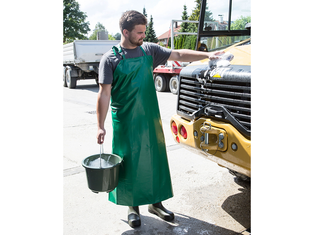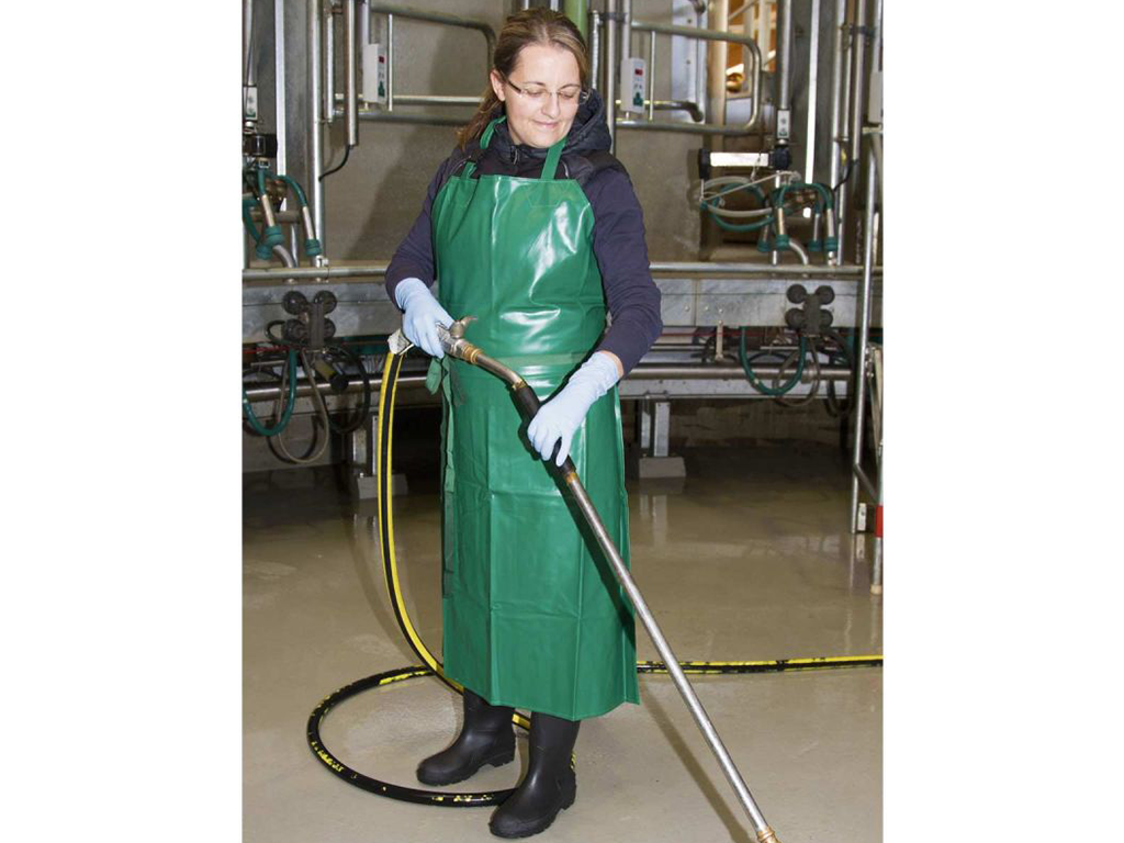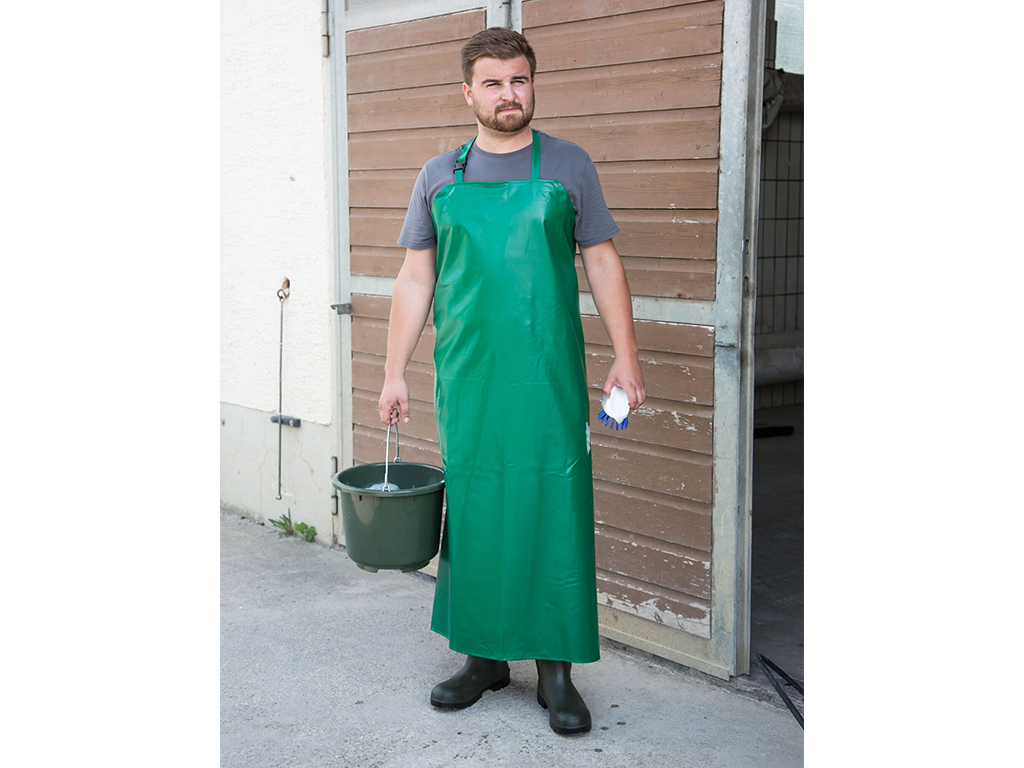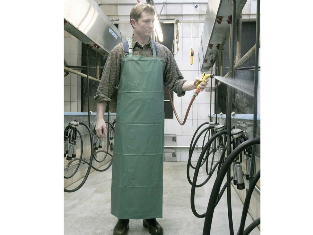 Fartuch do dojenia i mycia, odpowiedni również do prac rolniczych, domowych i ogrodniczych, materiał wodoodporny, chroniący przed wilgocią i wodą, wyjątkowo odporny na rozdarcia i pęknięcia , odporność na wysokie temperatury od -25°C do +70°C, praktyczne zapięcie na szyi za pomocą regulowanej klamry, wymiary 120x80 cm.