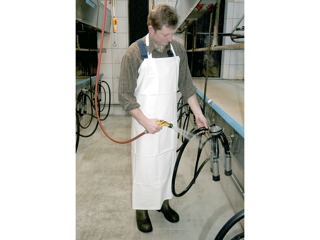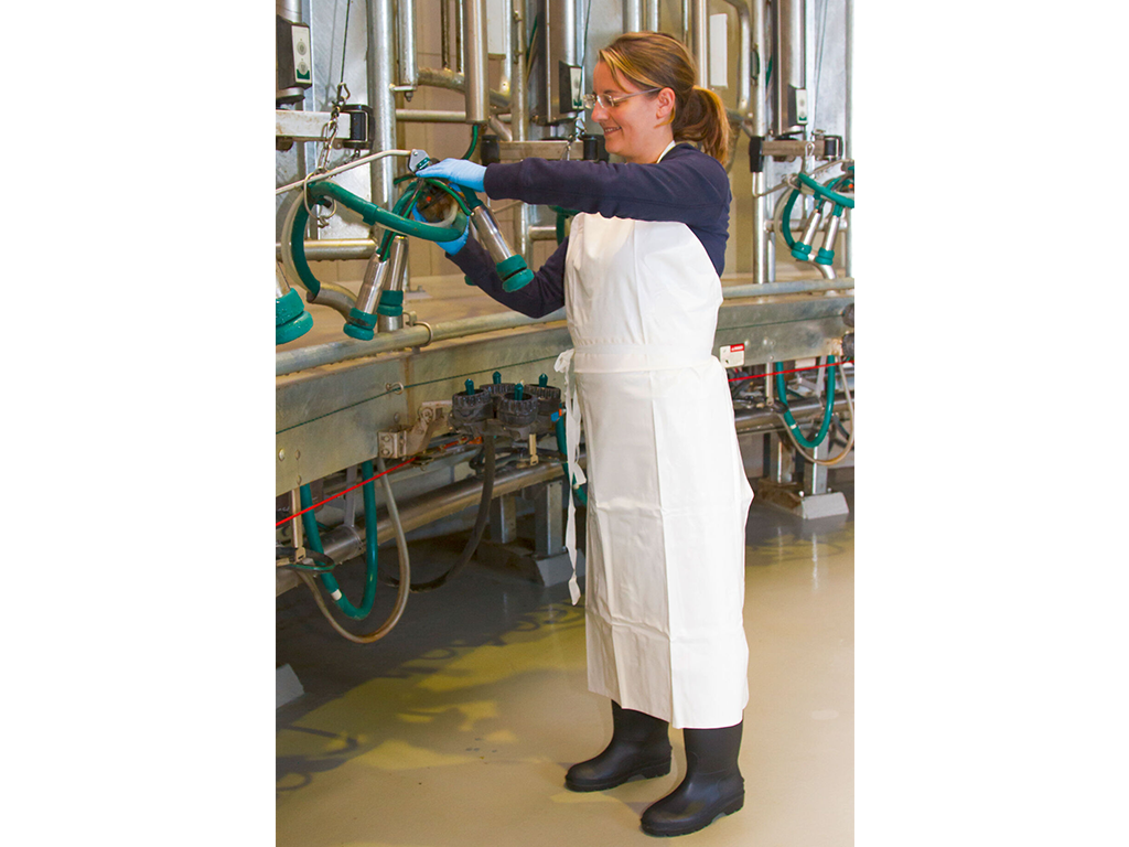 Fartuch do dojenia i mycia, odpowiedni również do prac rolniczych, domowych i ogrodniczych, materiał wodoodporny, chroniący przed wilgocią i wodą, wyjątkowo odporny na rozdarcia i pęknięcia , odporność na wysokie temperatury od -25°C do +70°C, praktyczne zapięcie na szyi za pomocą regulowanej klamry, wymiary 125x100 cm.