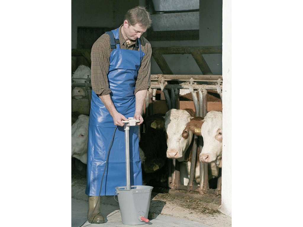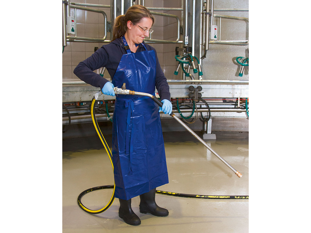 Fartuch do dojenia i mycia, odpowiedni również do prac rolniczych, domowych i ogrodniczych, materiał wodoodporny, chroniący przed wilgocią i wodą, wyjątkowo odporny na rozdarcia i pęknięcia , odporność na wysokie temperatury od -25°C do +70°C, praktyczne zapięcie na szyi za pomocą regulowanej klamry, wymiary 125x100 cm.